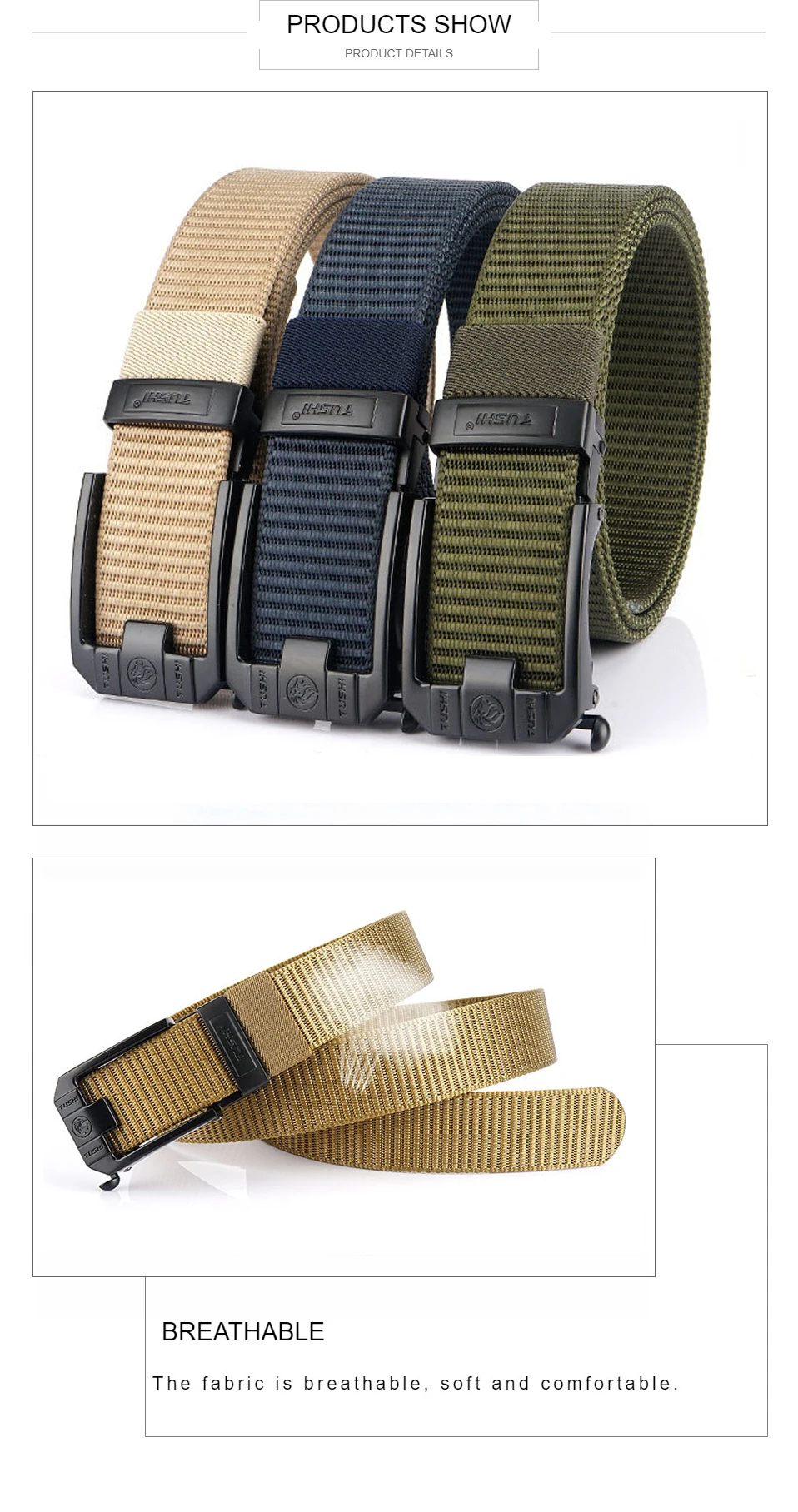 Ремень мужской нейлоновый, с автоматической металлической пряжкой, ...