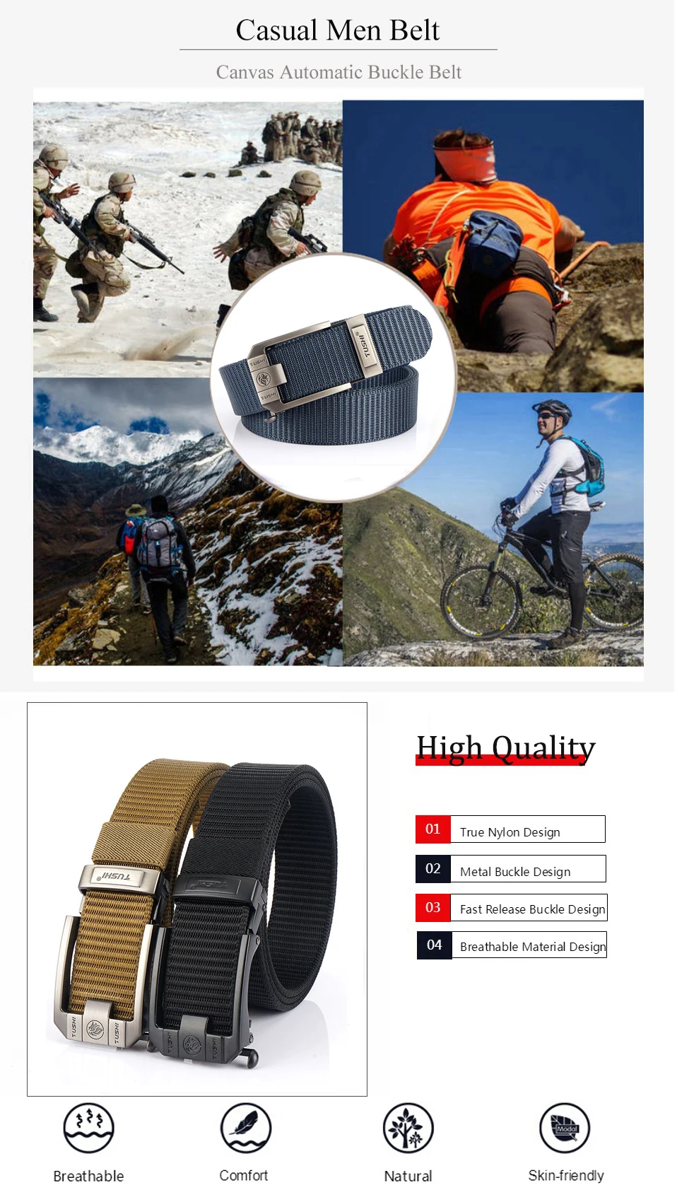 Ремень нейлоновый мужской, удобный пояс с металлической автоматичес...
