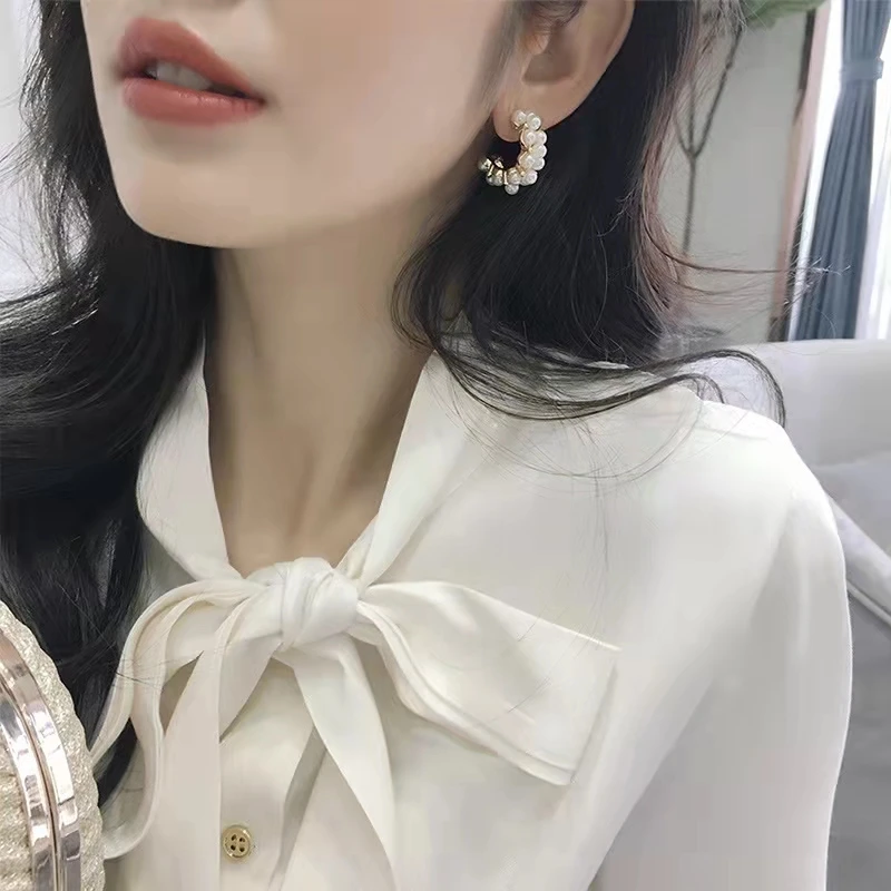 Женские серьги-кольца с искусственным жемчугом, серьги-кольца ручной работы в японском и корейском стиле, ювелирные украшения для подарка