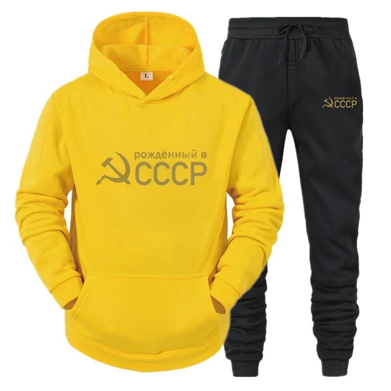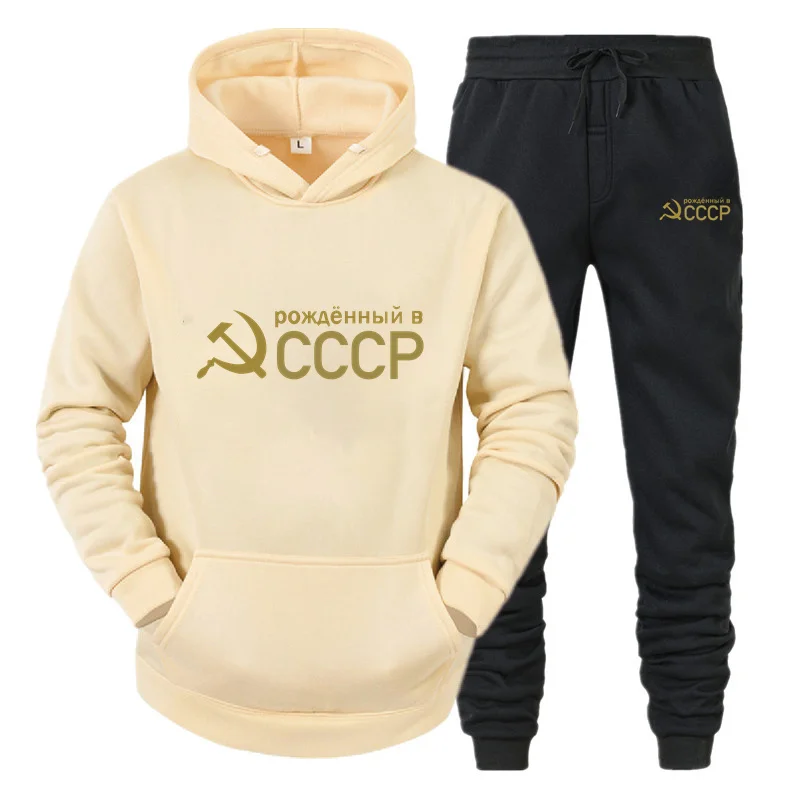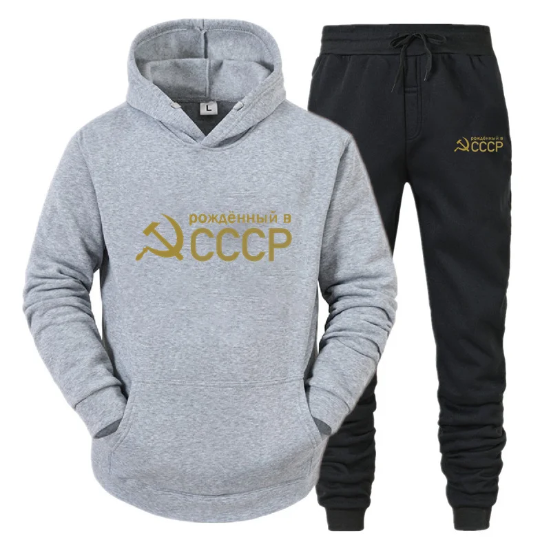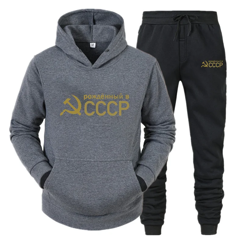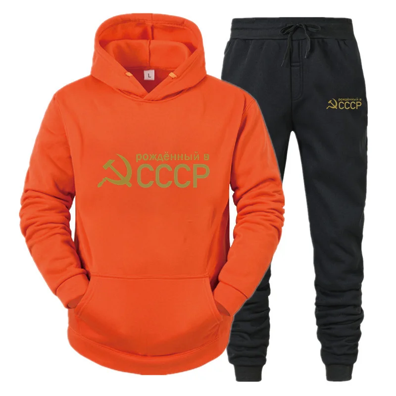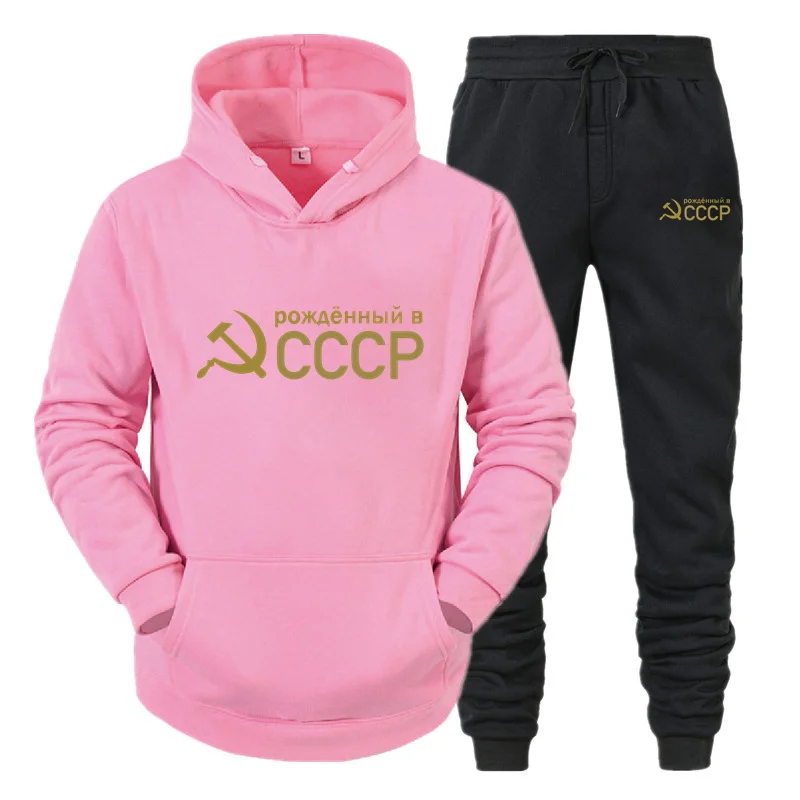 Мужская и Женская толстовка с капюшоном зимние СССР Харадзюку Россия советский с длинными рукавами Москва эластичные брюки с завязками теплый модный спортивный костюм