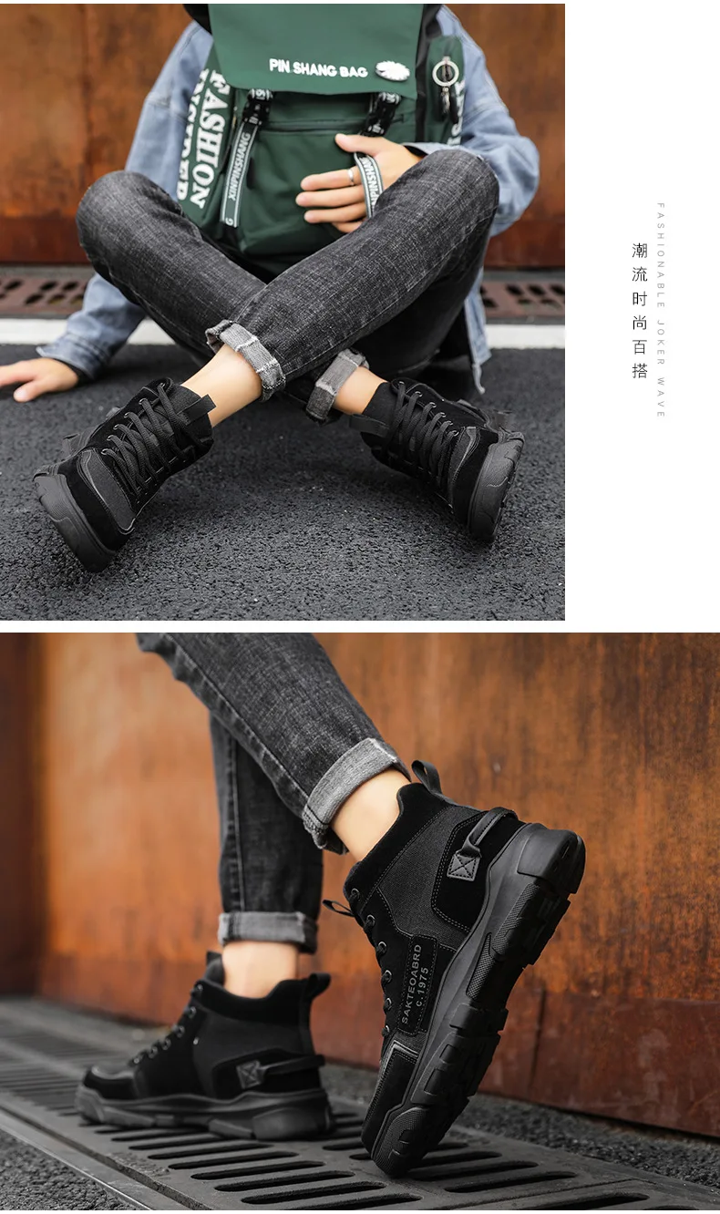 Кроссовки мужские высокие на шнуровке, Вулканизированная подошва, дышащие, Нескользящие, повседневная обувь для тренировок, черные, на осень