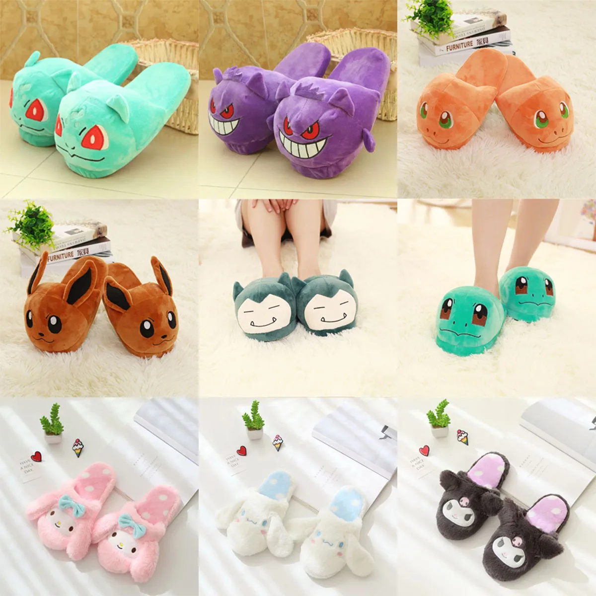 Kawaii Anime Plush SlippersPikachu Charmander Eevee Snorlax