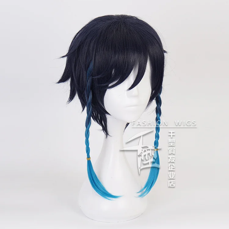 Genshin Impact Venti косплей парик Градиент Синий короткий Плетеный...
