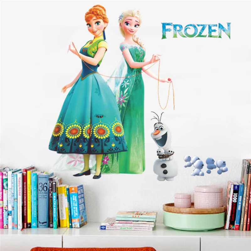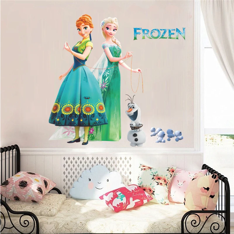 Мультяшный Олаф, Эльза, Анна, принцесса, замороженные наклейки на стену для детской комнаты, украшение для дома, сделай сам, искусство росписи, плакат из фильма