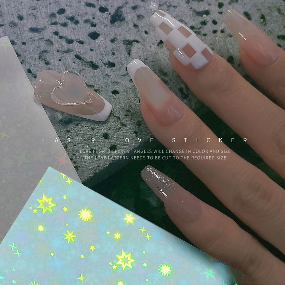 Любовь, сердце, звезды, Лазерная Фольга, клейкая лента, наклейка для дизайна ногтей, горячее тиснение на бумаге, сделай сам, посылка, сумка, цветная карта, конверт для фото декора