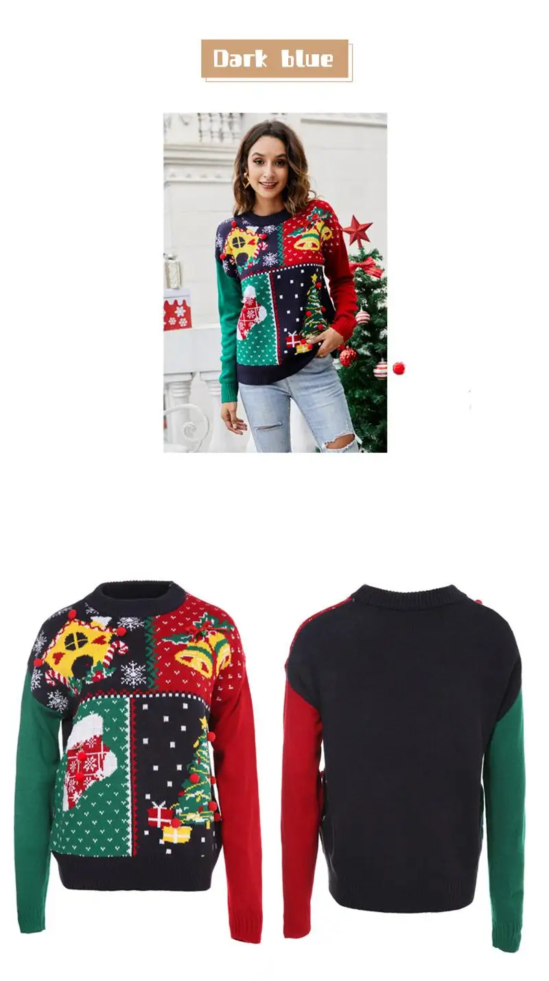 Рождественский свитер, вязаный пуловер с длинным рукавом, джемперы, женские свитера, женские зимние топы, трикотажные свитера