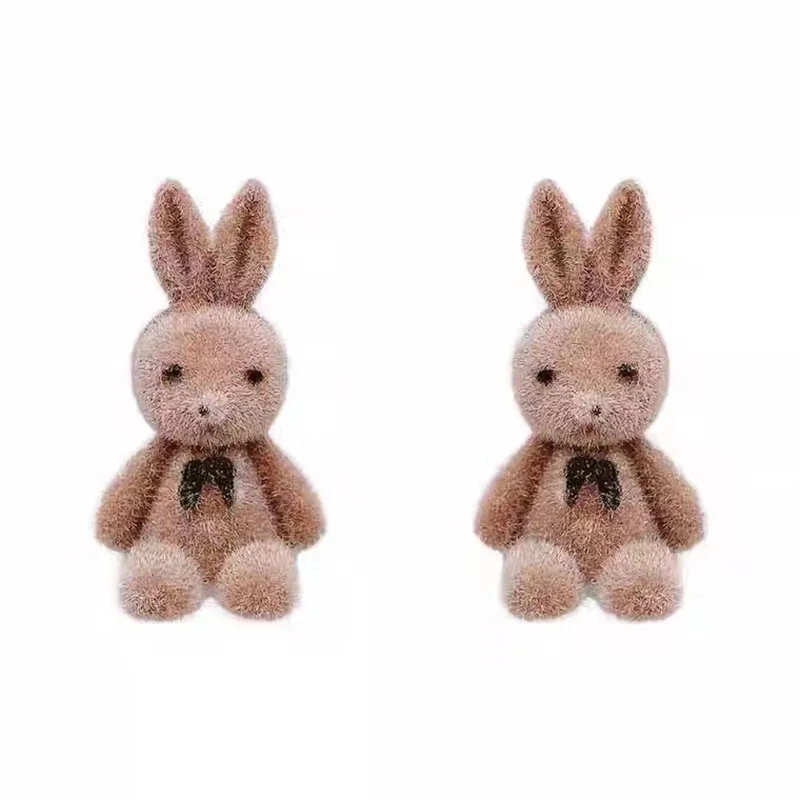 Флокированные плюшевые серьги-гвоздики в виде кроликов и медведей, ...