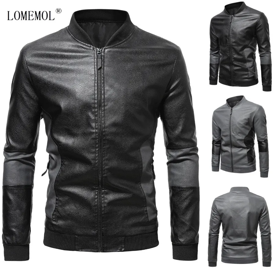 Мужская кожаная куртка LOMEMOL, новинка сезона осень-зима 2021, мотоциклетное повседневное кожаное пальто из искусственной кожи с воротником-стойкой и прострочкой для мужчин