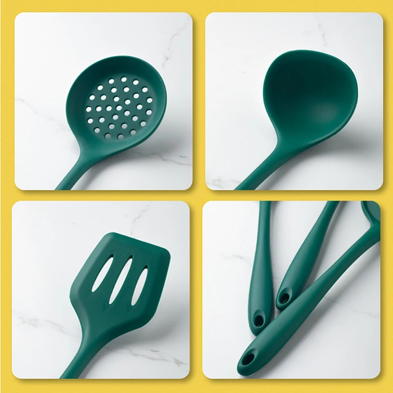 Кухонная посуда, набор кухонной утвари, зеленая лопатка, искусственная ложка, дуршлаг для пасты, антипригарная кухонная утварь, кухонный инструмент