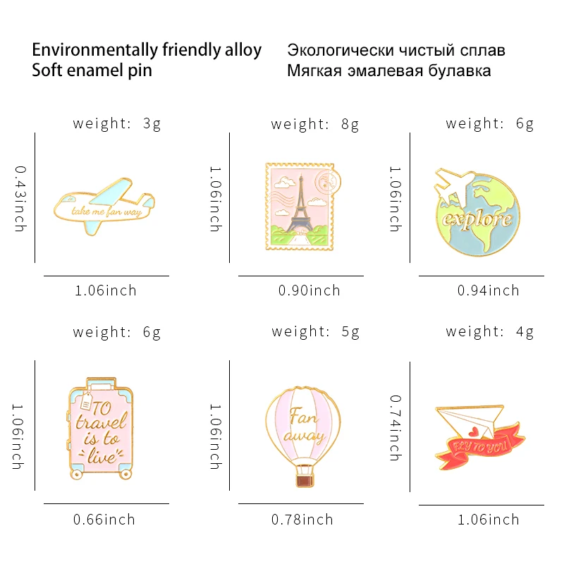 Эмалированная брошь XEDZ в стиле панк с изображением воздушного шара самолета, мультяшный чемодан, земли, башни, бейдж для путешествий, аксессуары для сумок, ювелирные изделия, подарки