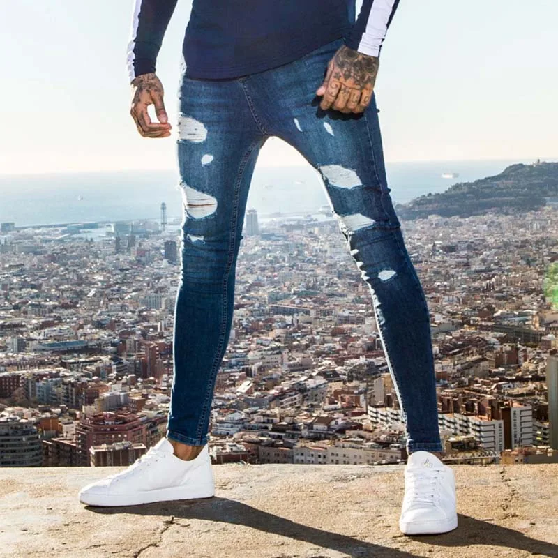 Мужские джинсы в стиле хип-хоп, белые облегающие рваные Однотонные эластичные джинсовые брюки, мужские повседневные брюки-карандаш для бега, новинка 2021