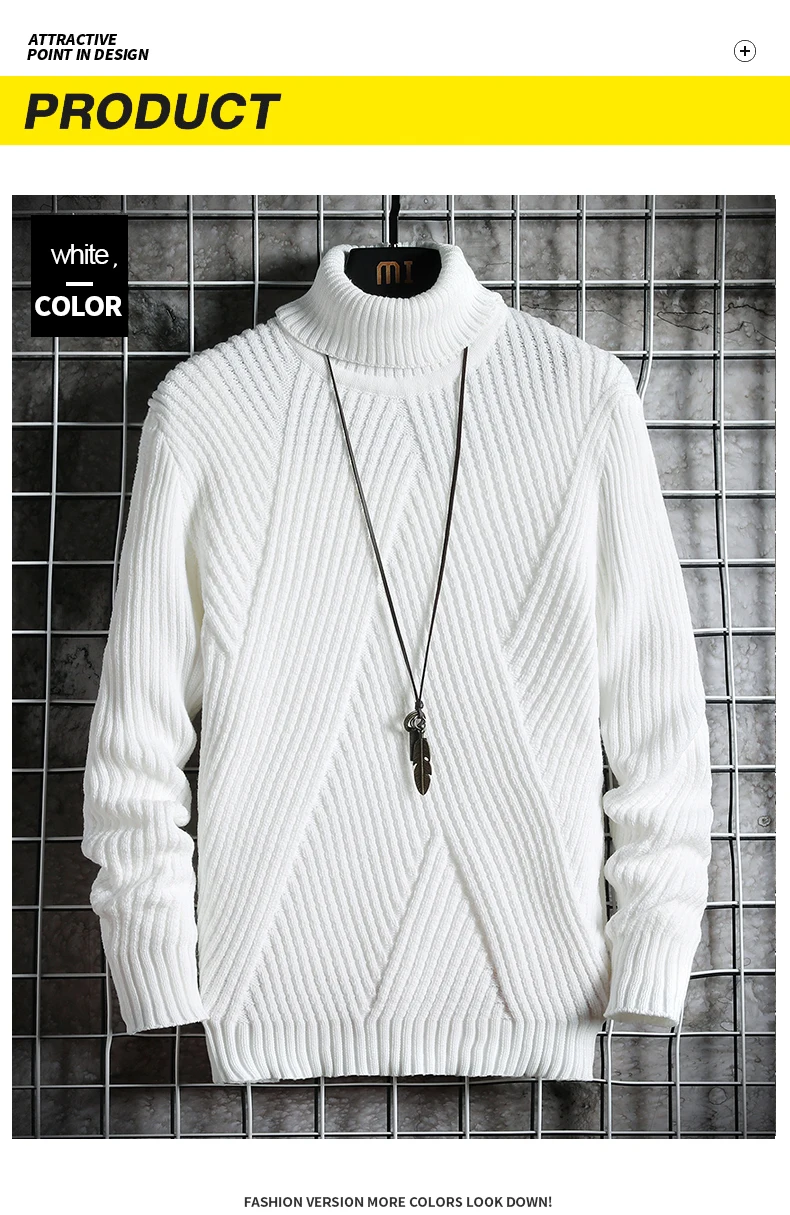 Зимний модный свитер в стиле Харадзюку, вязаные пуловеры с высоким воротником, осенняя облегающая одежда, мужской однотонный пуловер с асимметричными полосками