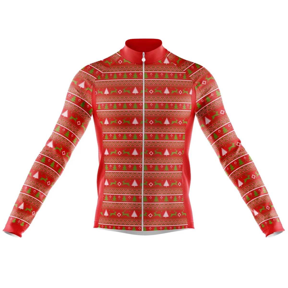 Мужская Флисовая футболка с длинным рукавом, Красная футболка для велоспорта с принтом Санта-Клауса и лося, для осени и зимы