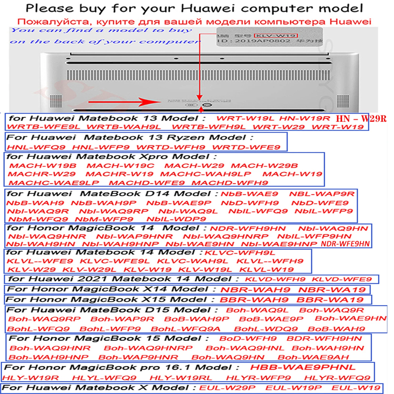 Применяемые моделиFor Huawei Laptop