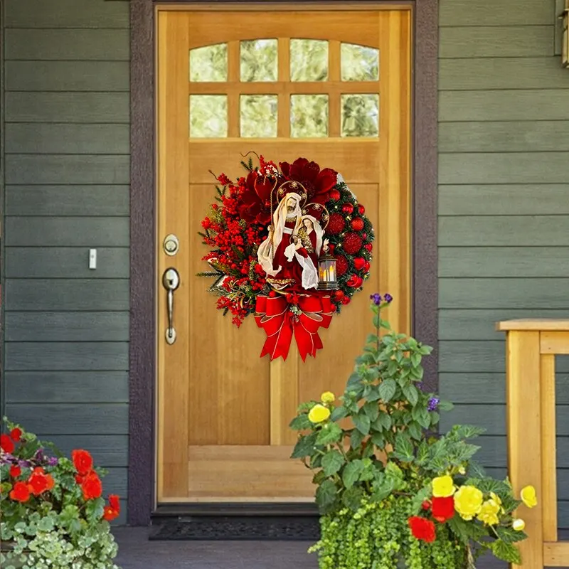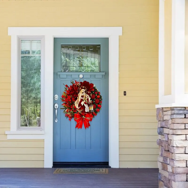 2022 священный Рождественский венок с подсветкой, искусственные подвесные украшения, украшения на стену входной двери, венок на рождественскую елку