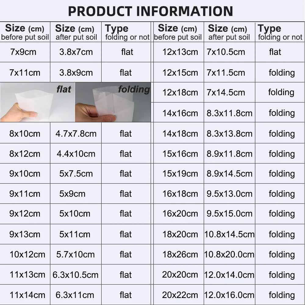 -【PACKAGE пакет INCLUDES】- 50/100 шт. нетканый Завод Мешки для питомника размер затрудняетесь в выборе правильного размера, 24 размеры для вашего выбора.