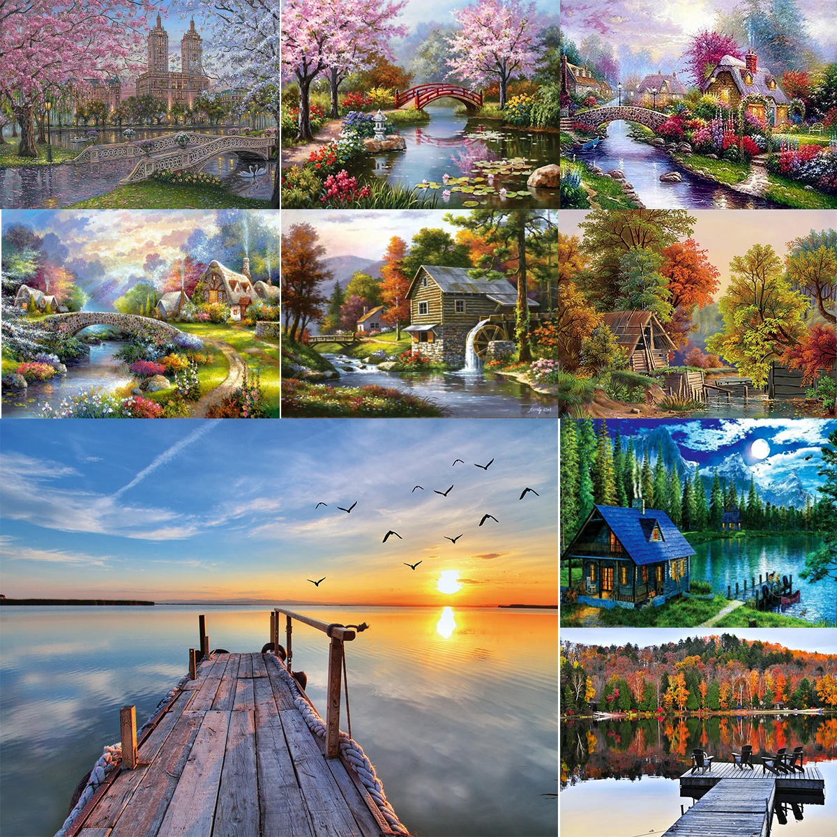 Алмазная картина 5d сделай сам, вышивка крестиком в виде леса, озер...