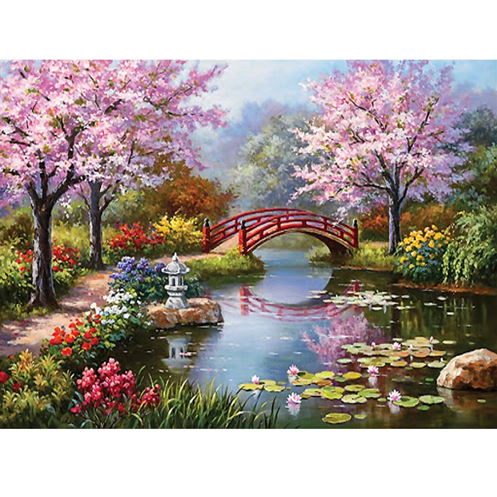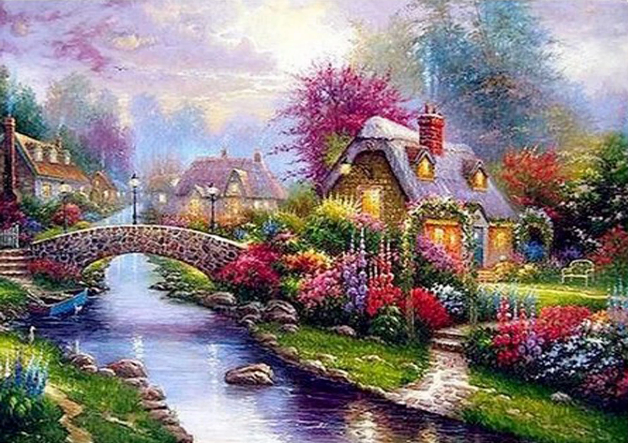 Алмазная живопись, Алмазная мозаика 5d с пейзажем и цветами, сделай...