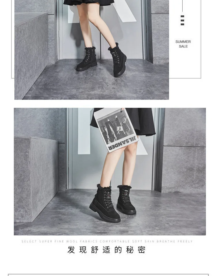 Fujinзимние женские модные ботинки Martin; Повседневная женская обу...