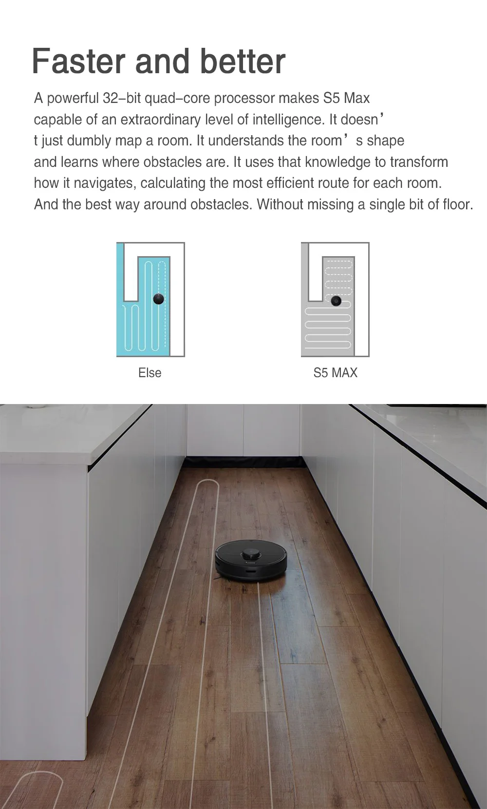● Побалуйте себя хрустящими, просто моченными полами каждый день с S5 Max. Разработан для бесшовной автоматической уборки, он имеет супер-размер резервуара для воды, точный контроль воды, виртуальных зон без швабры и многое другое. В сочетании с точным лазерным отображением, улучшенной навигацией и интенсивным вакуумным всасыванием, это делает безупречные полы проще, чем когда-либо. Все, что вам нужно сделать, это установить его и жить.