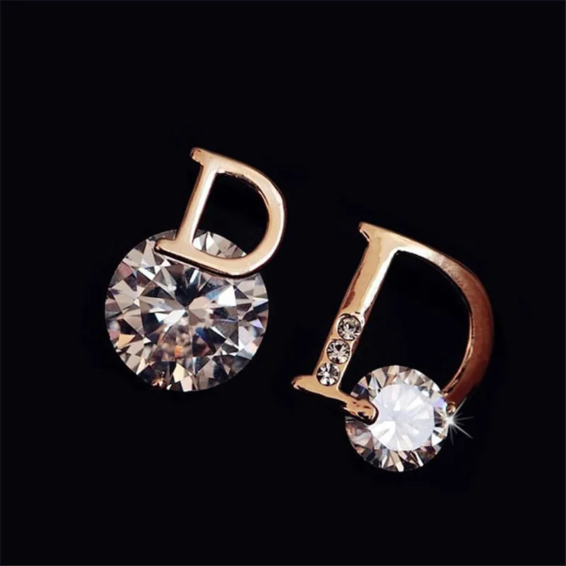 Простые компактные серьги-гвоздики с буквой D, дизайнерские блестящие серьги с кристаллами, милые ювелирные изделия в стиле интернет-знаменитостей, подарки для девушек