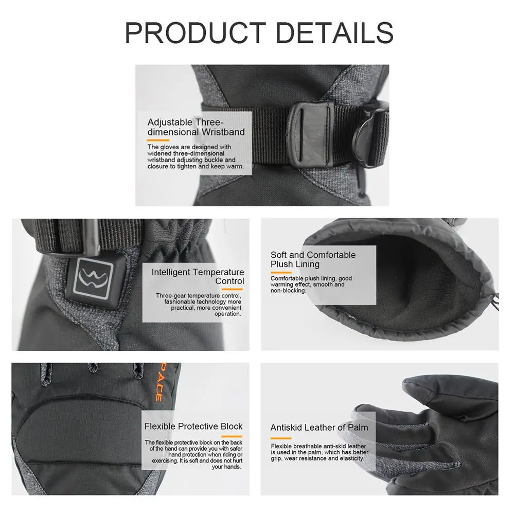 Перчатки с электрическим подогревом, перчатки с перезаряжаемым аккумулятором на 4000 мАч, водонепроницаемые зимние теплые перчатки для улицы
