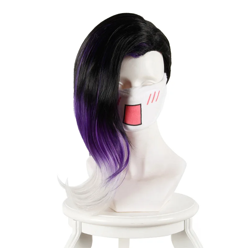 Парик Аниме Overwatch OW Sombra 40 см, черные фиолетовые Смешанные кудрявые синтетические волосы с Омбре для косплея