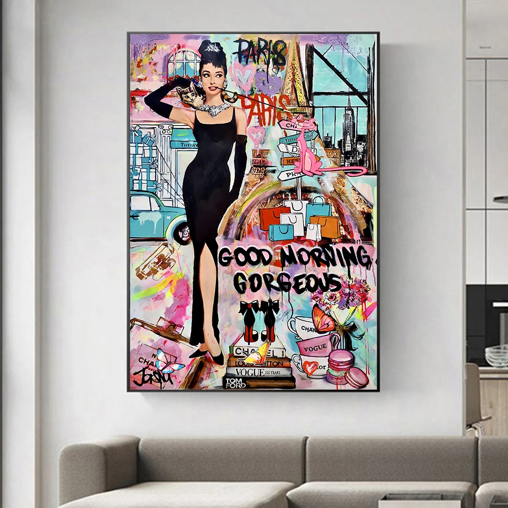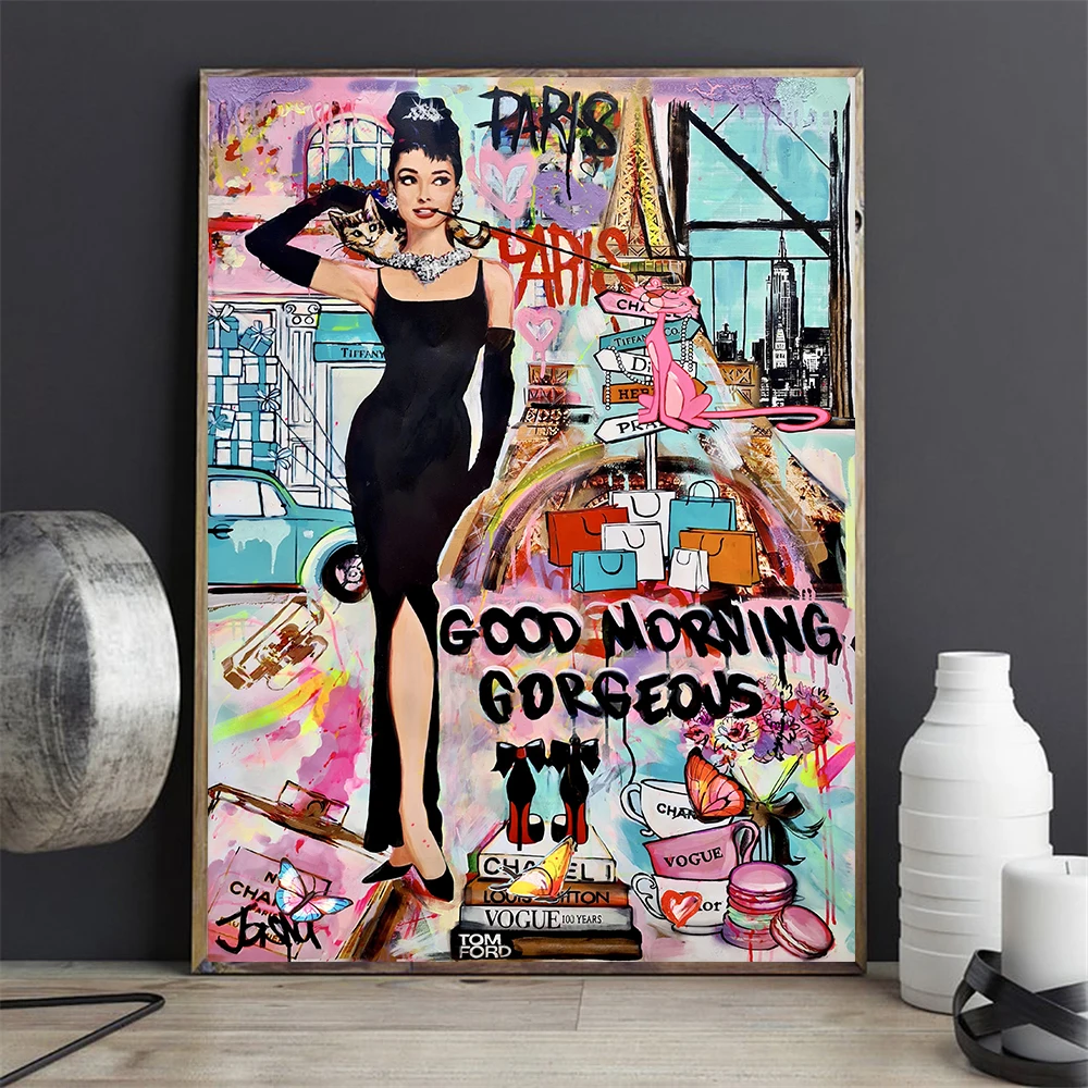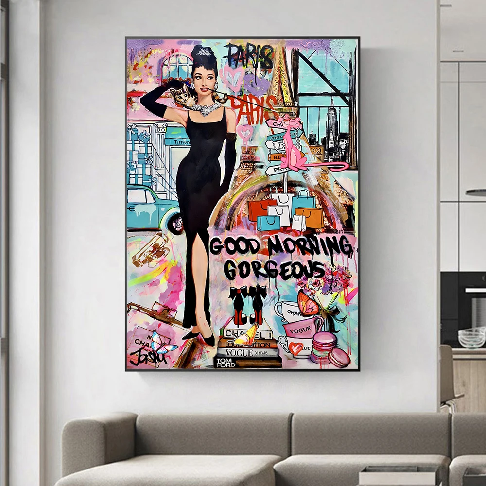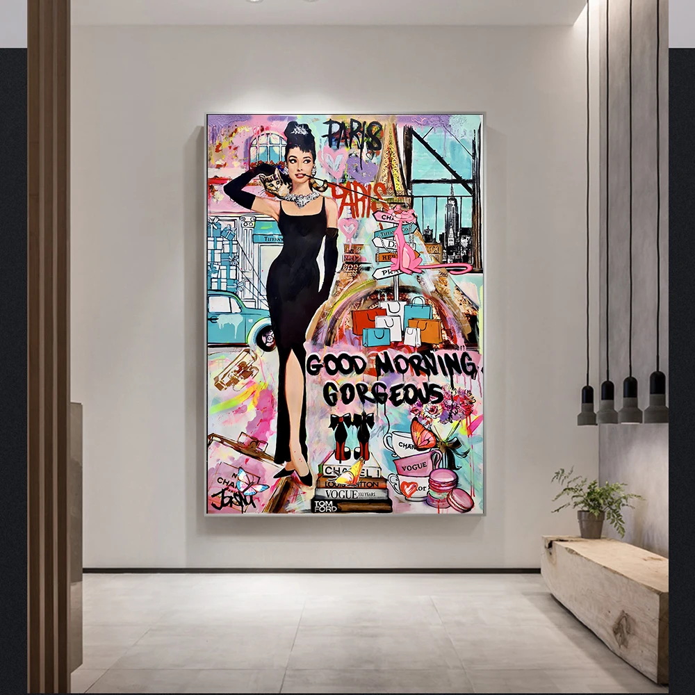 Граффити поп-арт роскошный BrandHepburn портрет, холст, живопись настенный художественный постер печатные картины для гостиной домашний декор