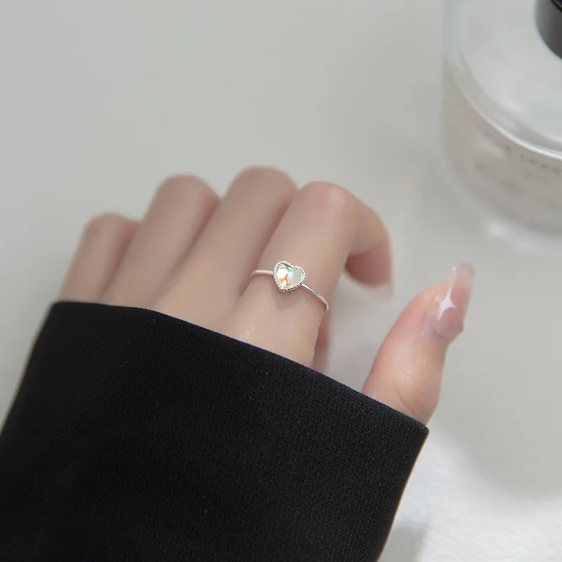 Кольцо женское серебристое с градиентным цирконием и сердцем