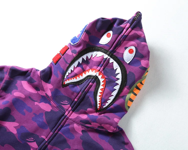 Толстовка Bape в стиле хип-хоп с капюшоном и принтом акулы