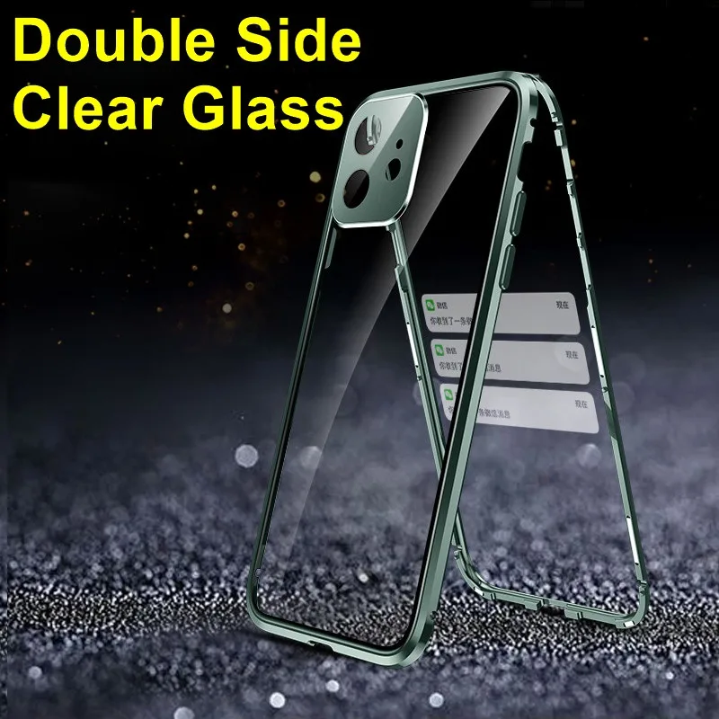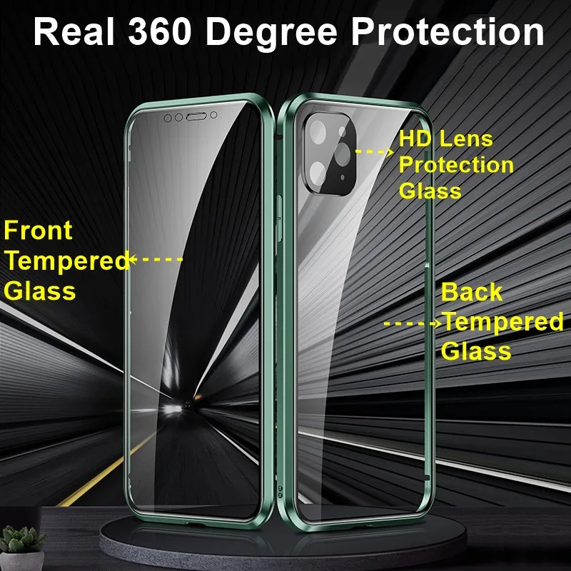 360 полностью двухсторонний стеклянный магнитный металлический чехол для телефона iPhone 13 12 Pro Max 13 Mini с защитой объектива камеры Магнитный чехол