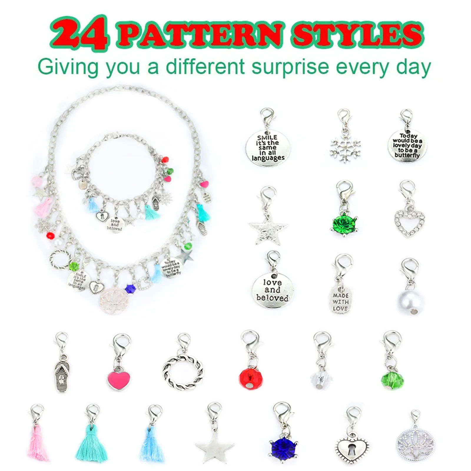 24 дня обратного отсчета для 1 рождественская Подарочная коробка DIY kit (22 подвески + 1 браслет + 1 ожерелье)