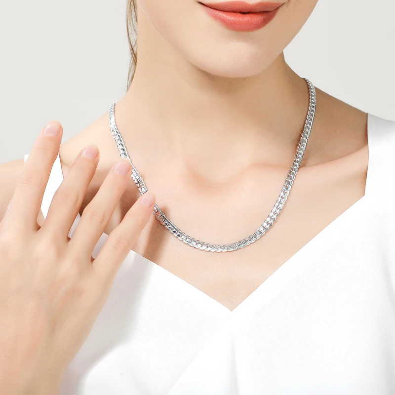 Новинка 925, серебро, 5,5 мм, Классическая плоская змея, Женская звеньевая цепь, ожерелья, фотоэлемент