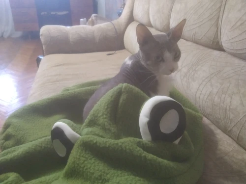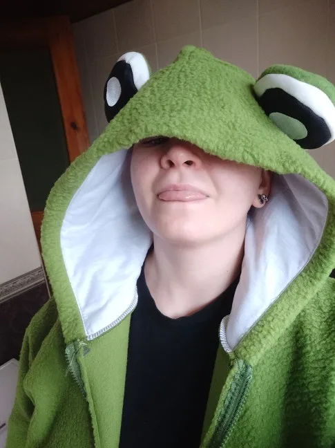 милая вещица! теплая, приятная ткань. не маломерит - я взяла на размер больше, плюс оверсайз... короче, она действительно огромная! мне нравится) конечно, кое-где торчат нитки и змейка пристрочена кривовато, но за такую цену - не страшно. и гдавное - кот одобряет!