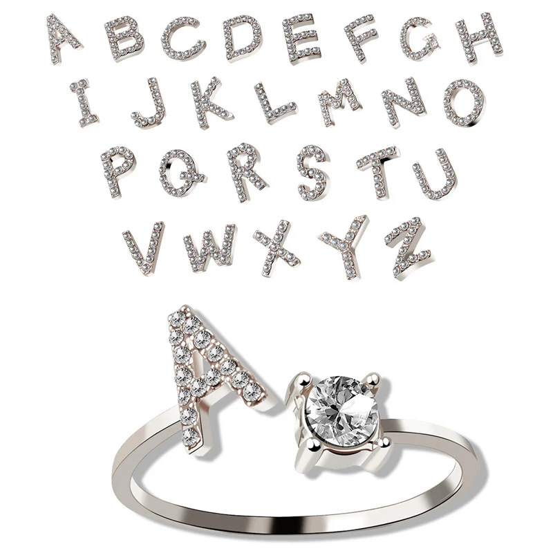 Женское кольцо с 26 инициалами, регулируемое кольцо с буквами, 2 цвета