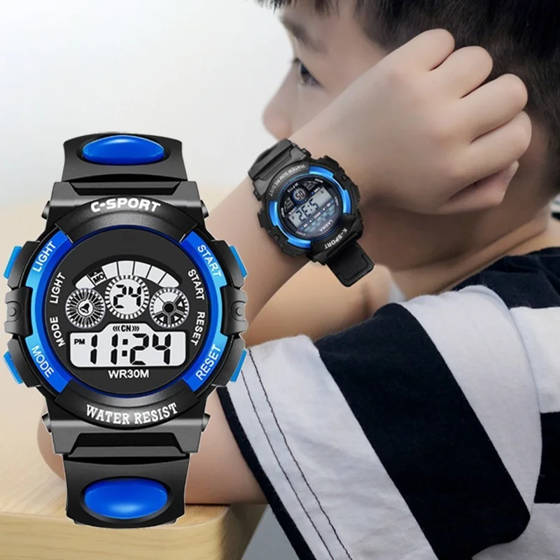 Часы детские электронные с цветным светящимся циферблатом, Водонепроницаемые многофункциональные светящиеся Будильник для мальчиков и девочек