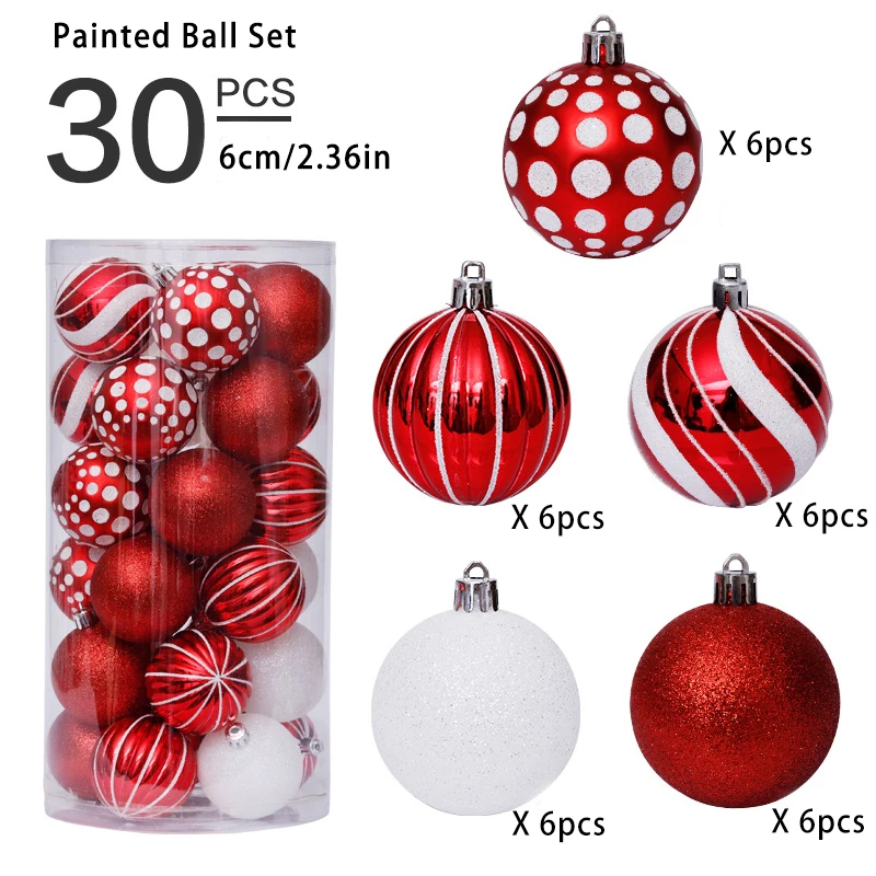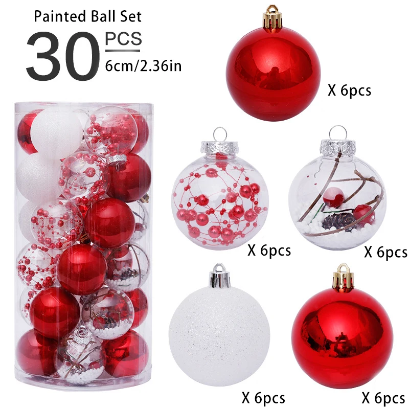 Набор рождественских шаров для елки, 6 см, 30 шт., рождественские у...