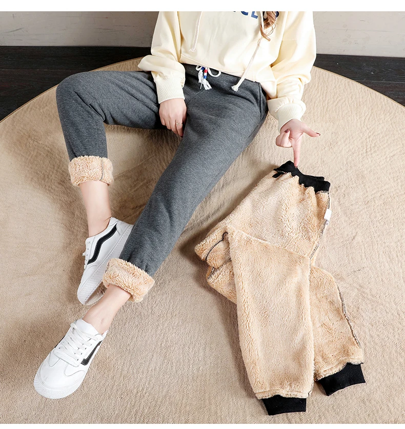 Женские зимние брюки оверсайз из шкуры ягненка и кашемира, теплые женские повседневные хлопковые брюки, свободные длинные брюки Harlan, спортивные брюки