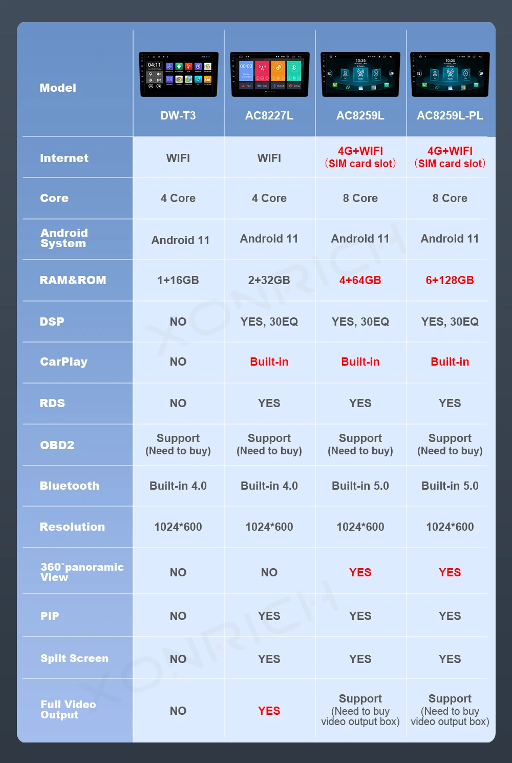 Автомобильный мультимедийный плеер Xonrich 6 ГБ + 128 Гб DSP радио ...