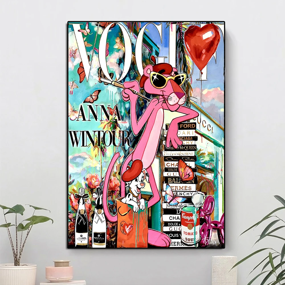 Постер с изображением розовой Пантеры в стиле граффити, роскошная брендовая Картина на холсте, Настенная картина для гостиной, украшение для дома