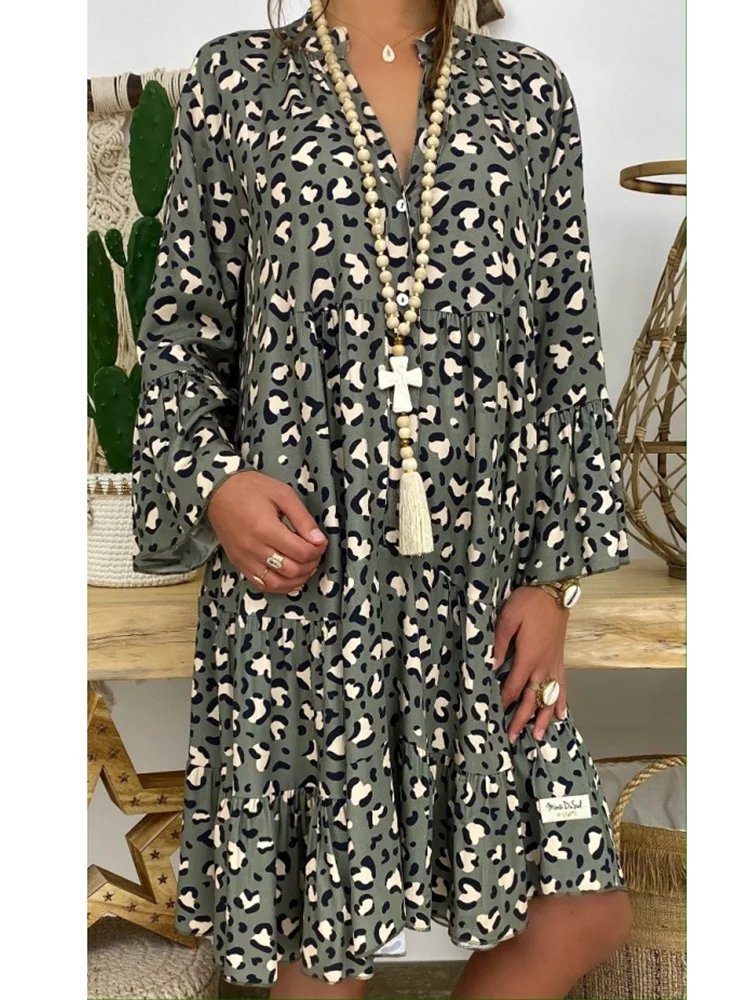 Винтажные платья для женщин 2021 Повседневное платье-рубашка с прин...