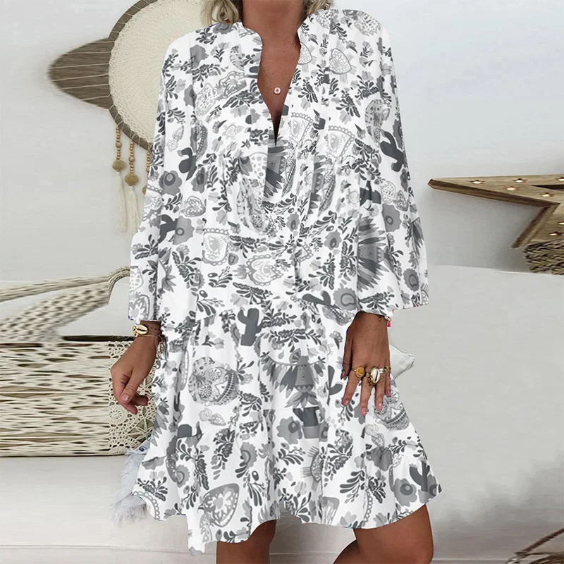 Женское платье на пуговицах, повседневное шикарное платье средней длины с длинным рукавом и цветочным принтом, Новинка лета-осени 2022