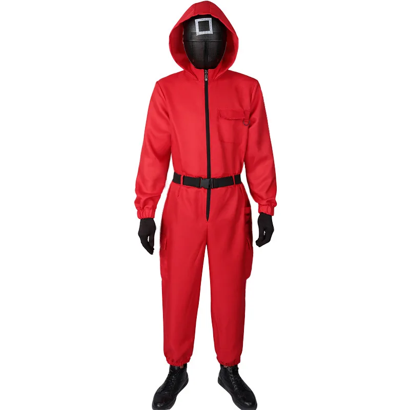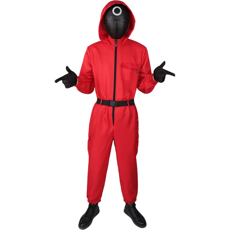 Костюм из игры кальмар, маска для косплея, красный комбинезон, пояс...