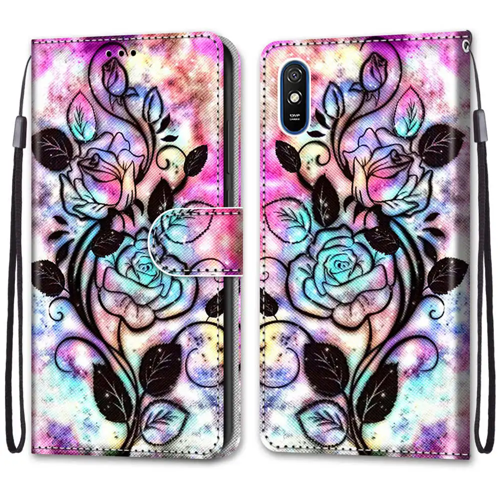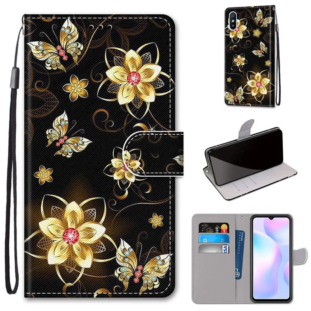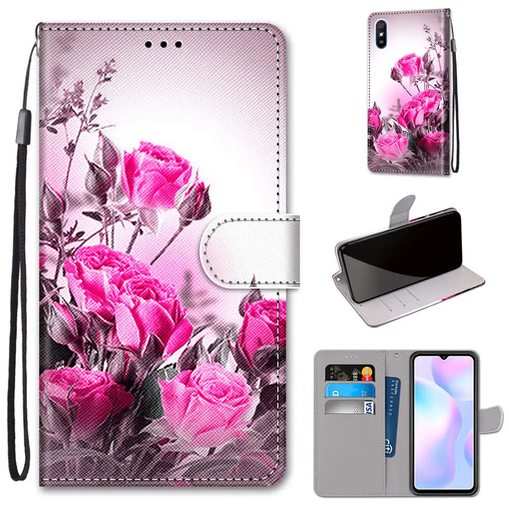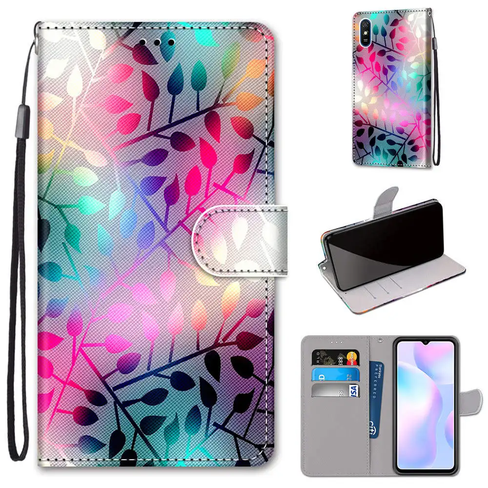 Модный чехол для телефона с цветами для Xiaomi Mi 10 10T Lite Redmi Note 9 9A 9AT 9C 9S 9T Pro POCO X3 NFC M3, кожаный флип-чехол-книжка с подставкой Etui