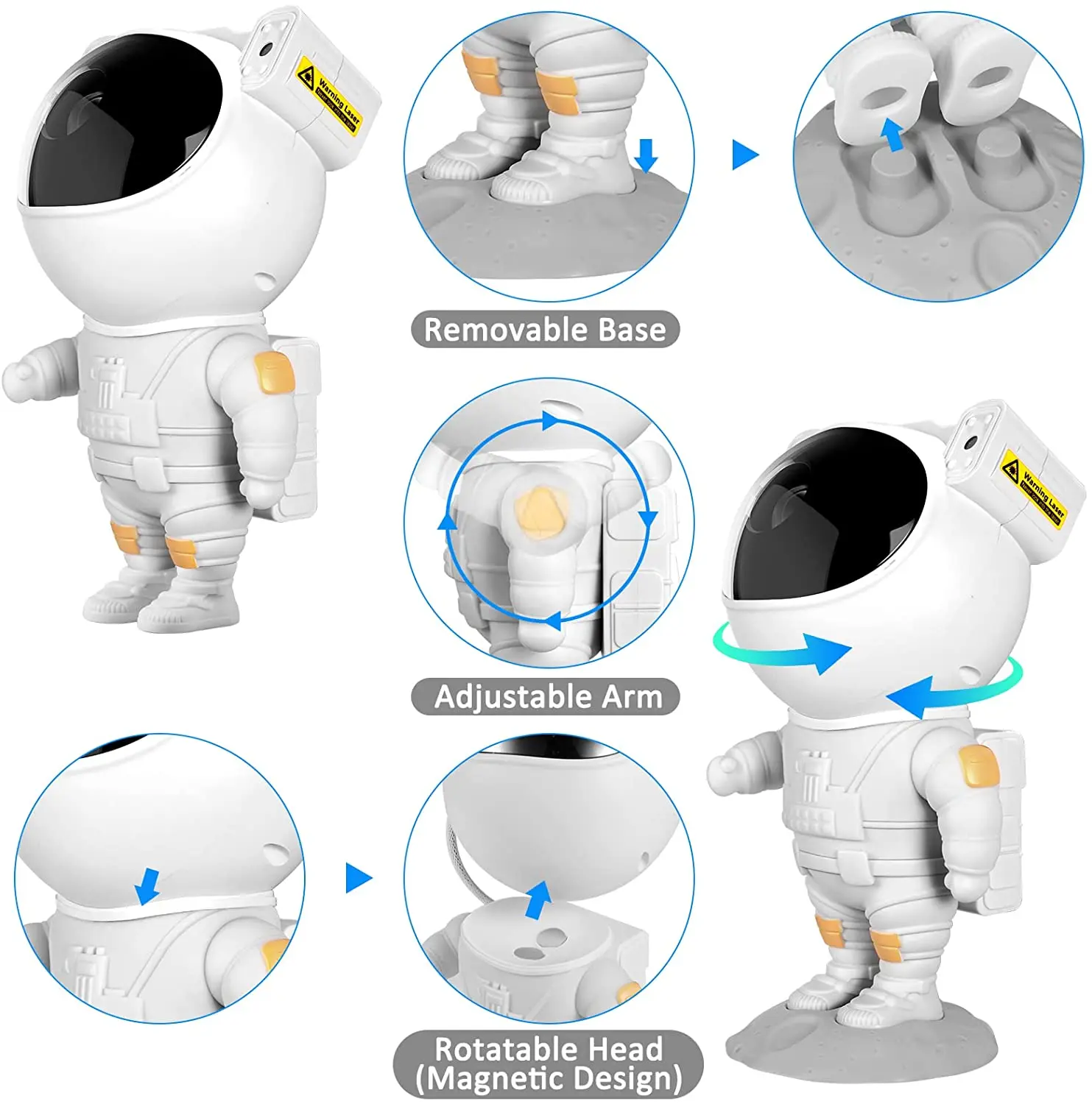 Характеристика:1. Попрощайтесь с традиционной проекцией и приветствуем новую проекцию. Головку можно поворачивать под разными углами, чтобы изменить направление проектируемого светильник.2. Рука может вращаться на 360 градусов, что делает астронавта более реалистичным.3. Различные световые эффекты, позволяют почувствовать огромное звездное небо.4. Переключатель времени, сладкий вход во вселенную и звездную сказку. Установите таймер для выключения, так что вам не придется беспокоиться о работе космонавта.5. Лучший подарок для семьи и детей: Наслаждайтесь едой под звездами, Создайте расслабляющую спа-среду или добавьте функции в свой домашний кинотеатр за несколько секунд. Этот проектор космонавта может играть роль, меняющую игру, для любого места в вашем доме. Это также идеальный подарок для взрослых и детей.6. Большой диапазон проекции, подходит для различных сцен. Подходит для семейного сбора/дня рождения/DJ-бара/караоке/игровой комнаты/домашнего кинотеатра/рождества/свадьбы.7. Можно использовать как лучший подарок на первый выбор для дней рождения, праздников, пар, детей, друзей и родственников