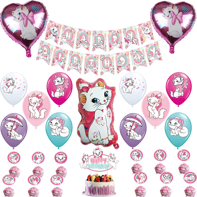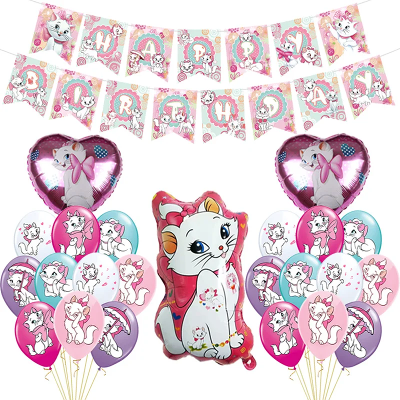 Воздушные шары в виде кота-Мари, розовые шары с флагом принцессы, б...