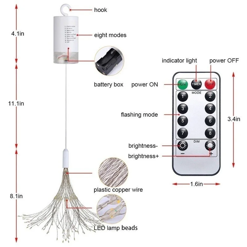 IP65 Водонепроницаемость-медный провод и светодиодный гирлянды являются водонепроницаемыми IP67, батарейный блок является водонепроницаемым IP65.