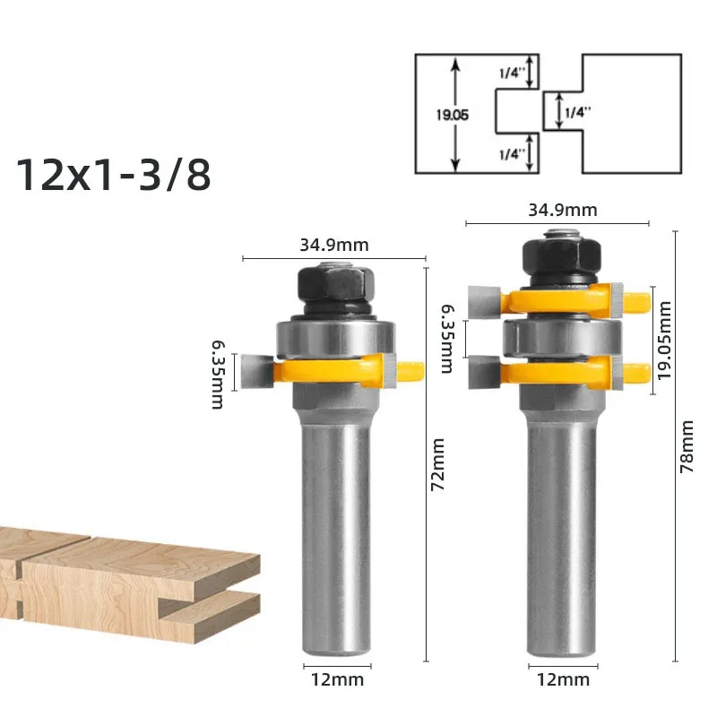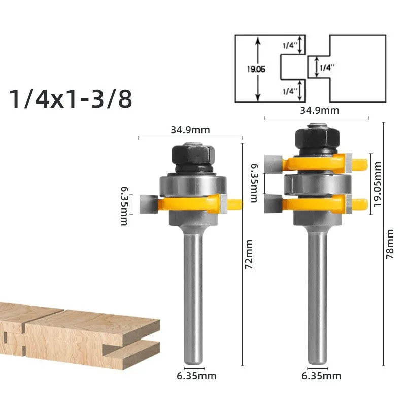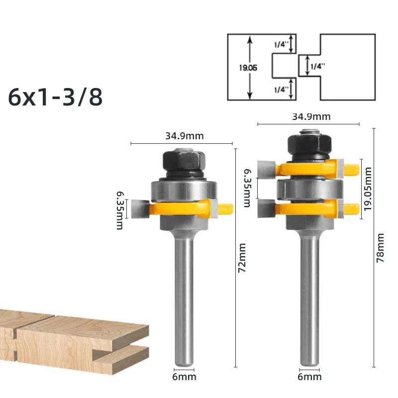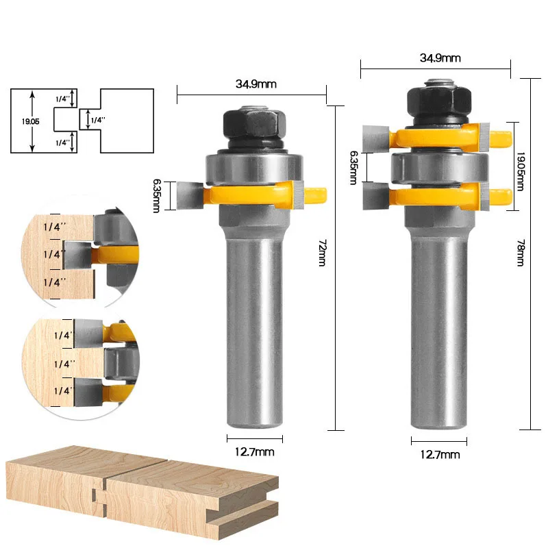 Набор Т-образных фрез для работ по дереву, 2 шт., 14 дюйма, 12,7 мм, 6 мм