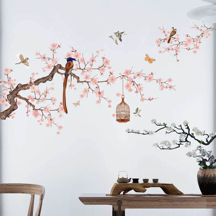 Настенные стикеры в китайском стиле с изображением дерева, цветов, ...