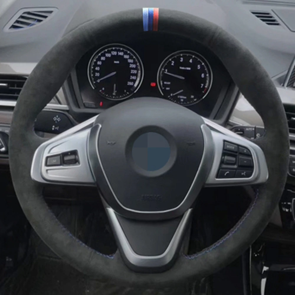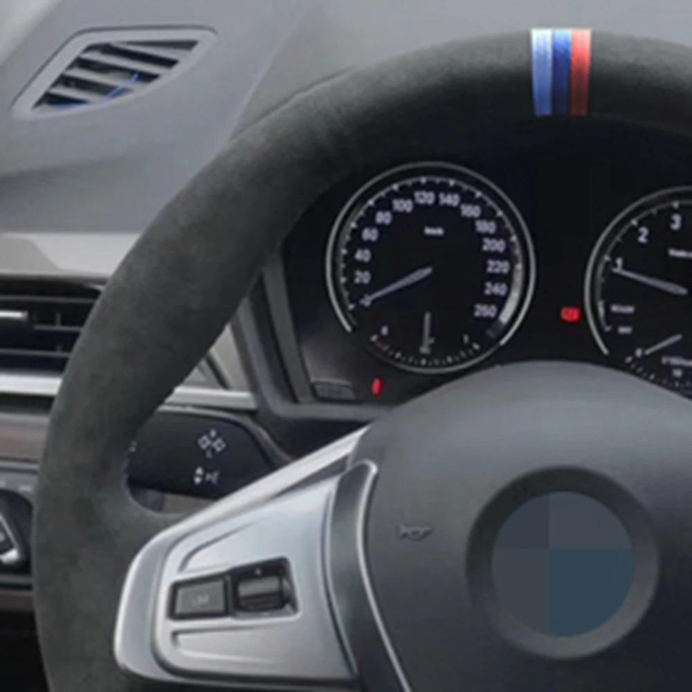 Сшитая вручную черная замша чехол рулевого колеса автомобиля для BM...